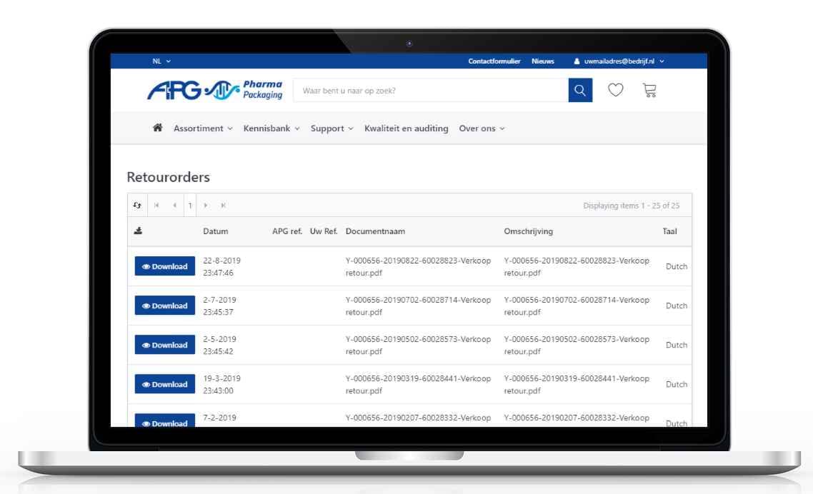 Orderbevestigingen kunnen op elk moment worden gedownload.