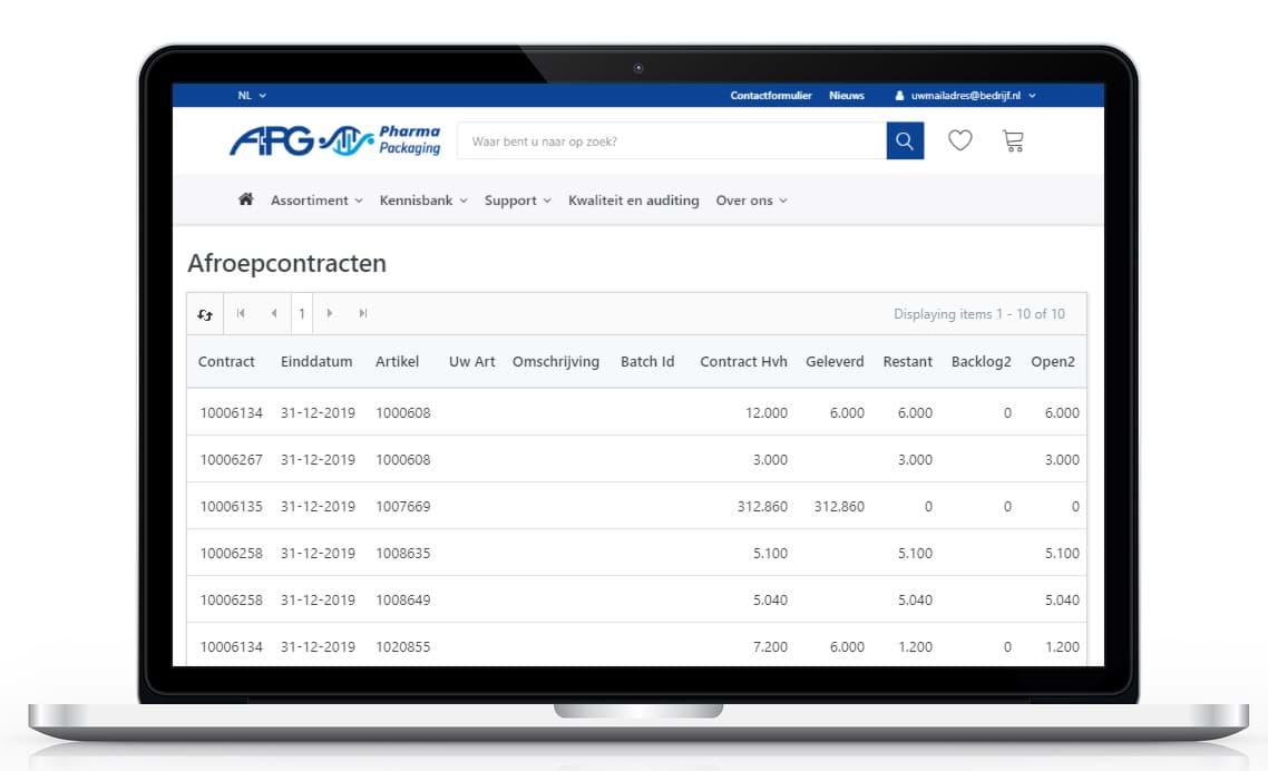 Eén overzicht van specifieke artikelen met uw klantspecifieke prijzen en bijbehorende informatie, zoals: